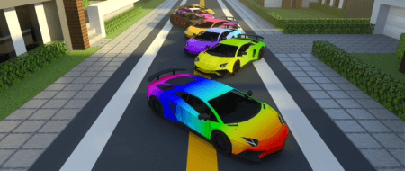 Lamborghini Aventador SV добавит лоска в ваш мир Майнкрафт! Авто с улучшенным дизайном и аэродинамиком и, конечно же, легендарный V12. Авто имеет несколько цветов, в том числе и радужные.