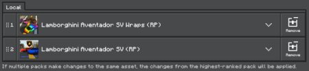Радужная оклейка представлена в отдельном пакете, который можно применить поверх основного lamborghini aventador sv.