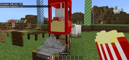 Аддон добавляет разнообразные предметы мебели и украшения для вашего дома в Майнкрафт. Флаги, столы, стулья, бутылки,машина для попкорна и многое другое!