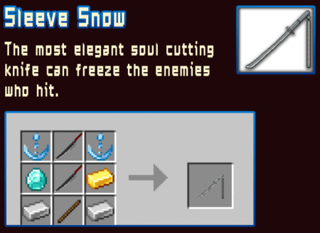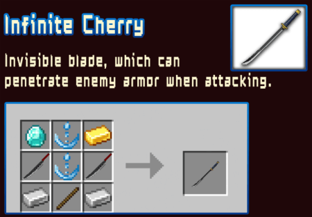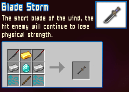 Это необычное оружие, созданное игроком в режиме выживания, обладает магическими способностями, давая вам беспрецедентную силу в Майнкрафт. Проводите разрушительные атаки, используйте силы стихий и сражайтесь с врагами с помощью мощи легендарных клинков.