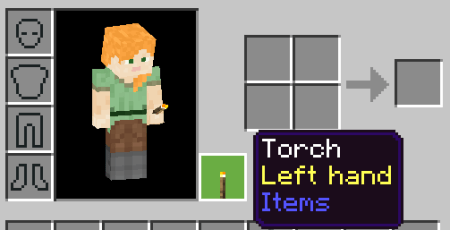 Этот аддон добавляет фонарик в левую руку и динамический свет, когда вы держите световые объекты в руке. Вы сможете исследовать ночь, пещеры и темные места, не тратя факелы.