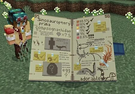 - Добавлен специальный житель под названием «Jelog Explorer», который будет появляться в дневное время в качестве пассивного моба. С ним вы можете обмениваться разнообразными яйцами животных, а также интерактивным полевым справочником по всем видам динозавров - книгой под названием "Динозавры формации Исянь", которая содержит подсказки о том, как приручить динозавров, а также некоторые забавные научные факты. Переверните страницу, щелкнув левую/правую часть книги.