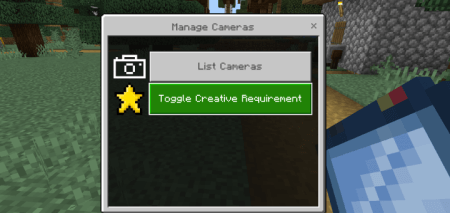 "Переключить требование к творчеству". С включенной этой функцией если вы находитесь в режиме выживания, у вас не будет доступа к опции "Управление камерами", чтобы отключить эту функцию, вам придется перейти в творческий режим и отключить ее.