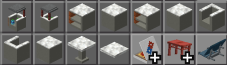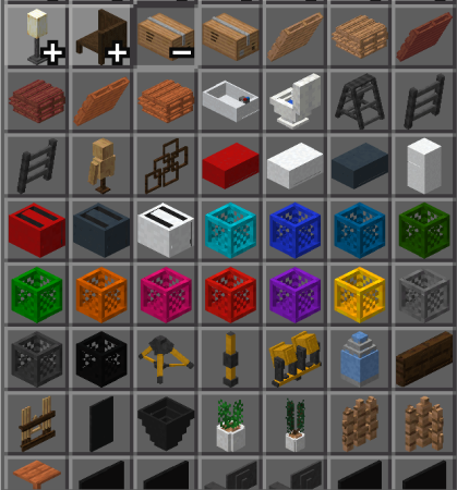 Эта категория была сделана для того, чтобы не запутаться в большом количестве блоков. В этой категории вы можете найти кухонные ящики, столы и другие предметы для кафетерия. К слову, многие блоки этой категории являются функциональными