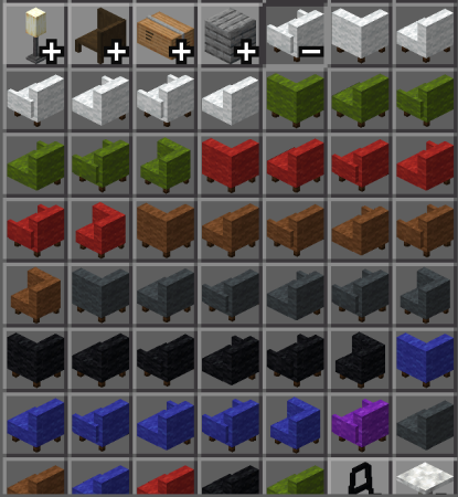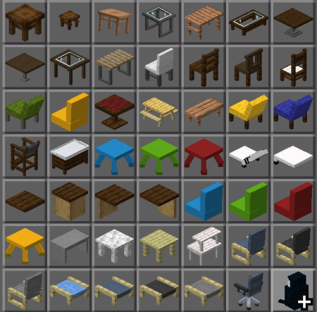 Мебели в аддоне достаточно, чтобы сделать любую комнату или интерьер для дома. Начиная от столов и заканчивая табуретками. Работа над аддоном все еще продолжается, поэтому ждите новую мебель, если вам этого недостаточно