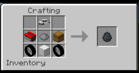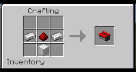 - Двигатель → 1 Железный блок, 2 Железные слитки, 1 Красный камень