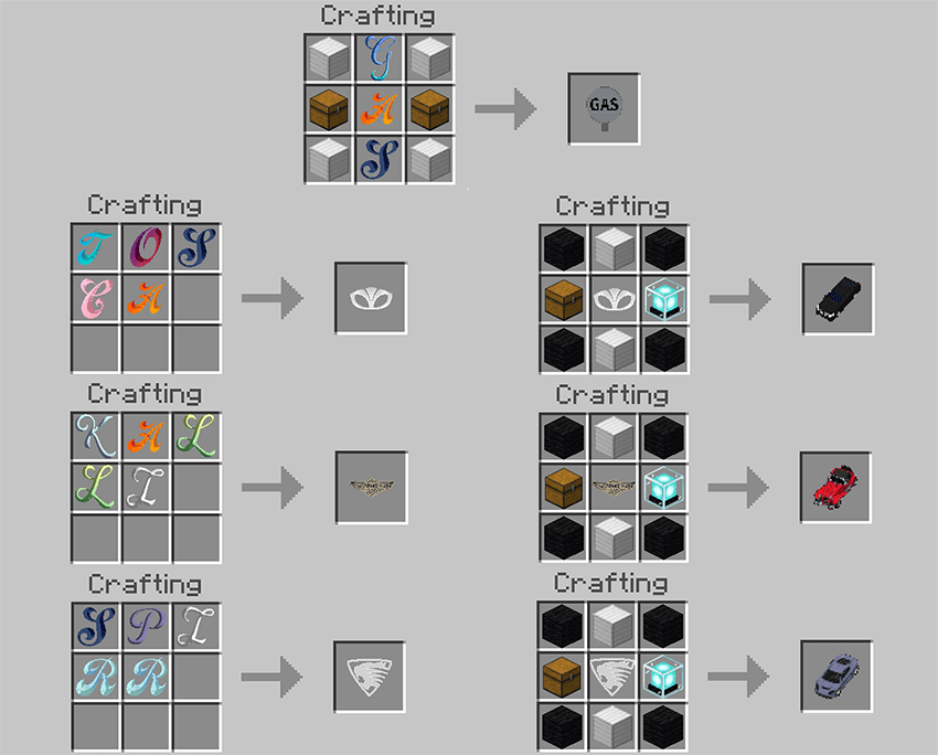 - Для каждой машины требуются определенные материалы, которые необходимо комбинировать в соответствии с изображением крафта, представленным ниже.