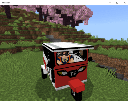 Этот аддон добавляет в Майнкрафт два новых транспортных средства, которые вы можете приобрести в новом строении, найденном в таких биомах, как Равнины, Саванна или Лес.