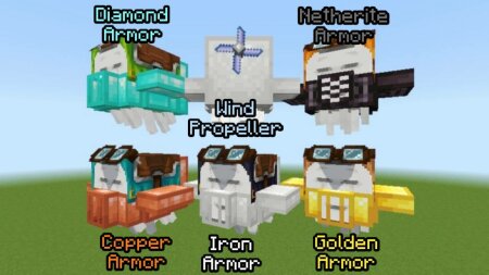 - Увеличивает защиту Happy Ghast — от медной до незеритовой вариации.