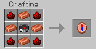 - Компас восстановления: показывает расстояние (в блоках) до места последней смерти игрока. Показывает «Неизвестно», если смерть произошла в другом измерении, чем текущее.