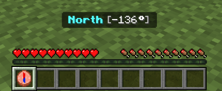 - Продвинутый компас: показывает направление, куда смотрит игрок, и угол (в градусах).
