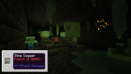 - Слизистый кинжал наносят 6 секунд Яд 2 любому мобу, атакованному этим оружием.