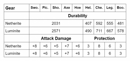 - Из-за того, как трудно получить люминит, люминитовое снаряжение немного лучше, чем незеритовое!