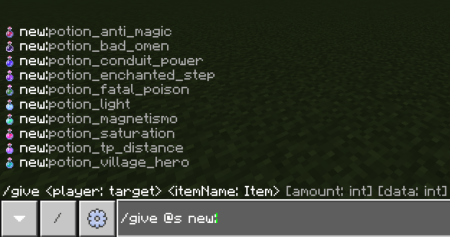 Если вы введете следующую команду, вы сможете получить новые зелья, / give @s new:
