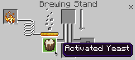 - Поставьте активированные дрожжи в нижнем слоте пивоваренного стенда, а сверху добавьте хмель в качестве реагента.