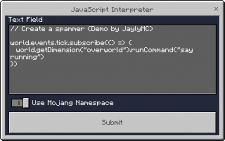 Это дополнение позволяет разработчикам отлаживать код jаvascript и немедленно сообщает об ошибке в игре Minecraft с помощью этого интерпретатора. Это уменьшает количество ошибок сценариев, возникающих при разработке кода, и время, а также позволяет разработчикам экспериментировать с новыми функциями, доступными в модулях GameTest Framework API в Minecraft.