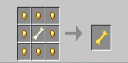 Золотую кость можно использовать для приручения животных. Для изготовления золотой кости вам понадобится восемь золотых самородков и кость по этому рецепту на верстаке: