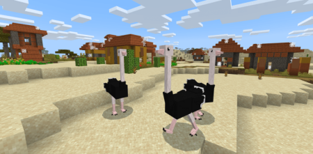 Мы найдем страуса в биомах саванны. Мы можем приручить страуса, используя золотую кость. Имея прирученного страуса, мы можем оснастить его страусиным седлом, чтобы мы могли ездить на нем. Мы также можем хранить в нем наши вещи, как если бы он были сундук.