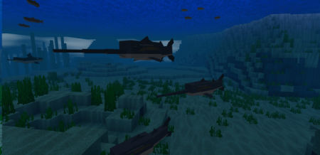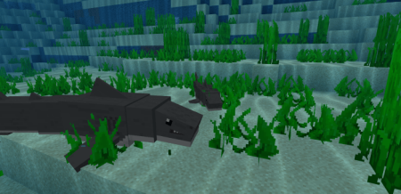 Все акулы обитают в океанских биомах, они агрессивные животные и будут атаковать игрока.
