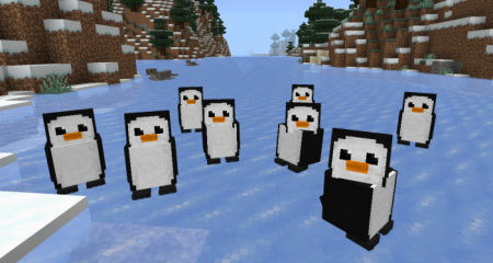 Мы можем найти их в замороженных биомах, они питаются любой рыбой, могут плавать и дышать под водой, мы можем приручить пингвина с помощью золотой кости.