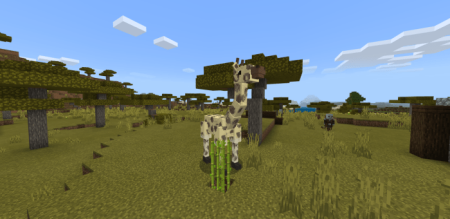 Мы можем найти их в биомах саванн и джунглей. Вы можете приручить их с помощью золотой кости. Жирафы питаются пшеницей, яблоками и золотой морковью, они будут защищаться от любого дикого животного, которое нападет на них.