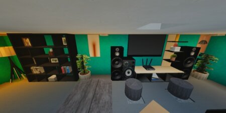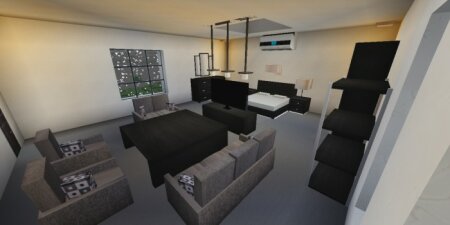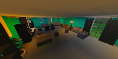 - Добавлены новые диваны, свет и кресло с подушкой, новый кондиционер, подставка под телевизор, вазы для цветов, декоративные элементы: книги, часы, настенные росписи и столы.