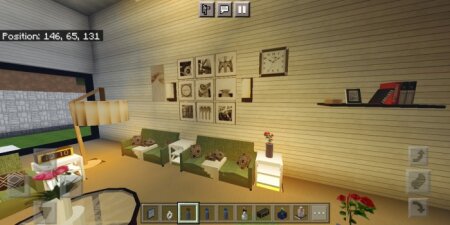 Аддон добавляет более 210 предметов мебели разных цветов и моделей, максимально приближенной к реальной, для спальни, кухни, ванной комнаты и гостиной. Вы можете обустроить свой дом в Майнкрафт так, как хотите, нет предела для фантазий.