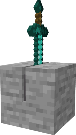 - Меч воткнется внутрь блока