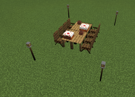 В аддоне много мебели начиная от стульев и столов и заканчивая палатками! Большая часть мебели имеет цветовые вариации.