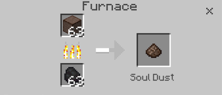 Из этой руды выпадет пыль, а камень души можно использовать в качестве украшения; Вы также можете постоянно плавить блок, чтобы получить пыль.