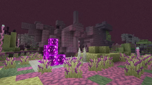 Плоский обширный биом с водяными гейзерами, валунами, извилистыми лозами, розовыми хорусовыми деревьями и бассейнами с жидкостью пустоты.