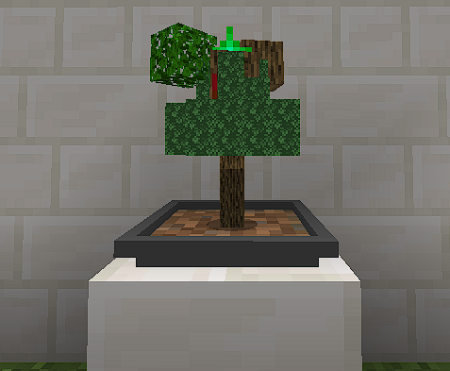 Теперь в горшках будут применяться блоки. Также изменены текстуры. Каждые 30 секунд дерево будет сбрасывать древесину и листья, а также производить частицы.