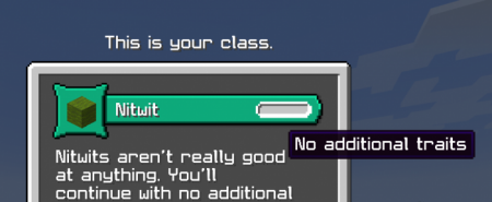 Обычный человек. Это персонаж для игроков, которые ищут обычные приключения, соблюдая суть ванильного геймплея. Также можно комбинировать с другими классами, но тот из них, который предоставляет дополнительные меньшие черты.
