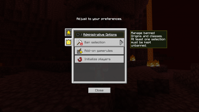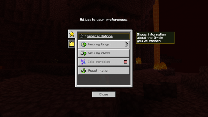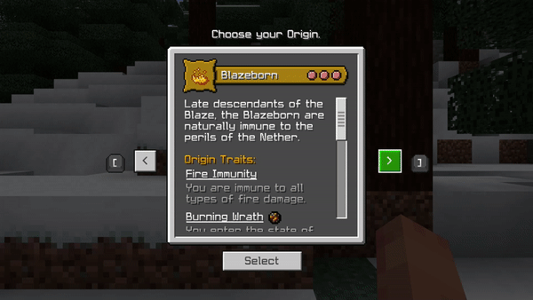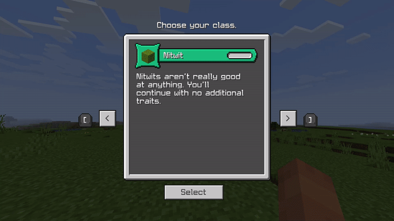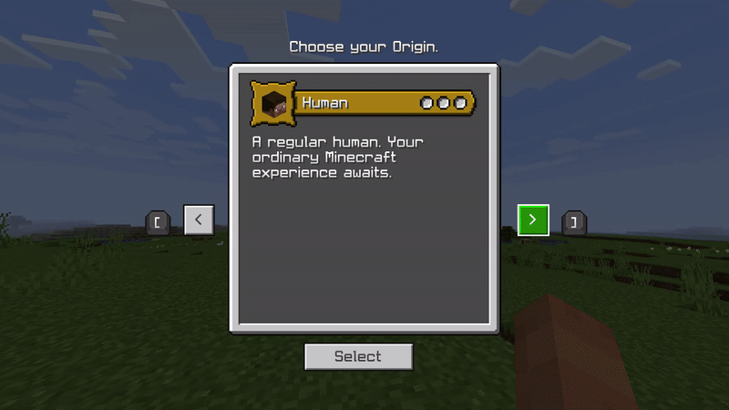 Как только вы впервые загрузите свой мир с включенным дополнением, вас встретит экран выбора, где вы можете выбрать свое происхождение и класс: