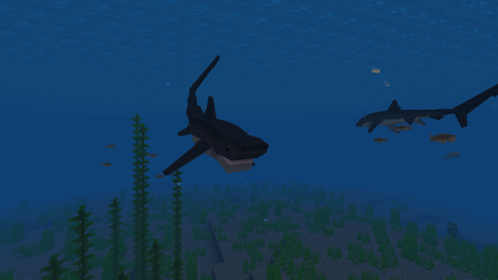 Этот аддон делает моря очень опасной средой, здесь можно найти множество прожорливых хищников, скрывающихся под волнами!