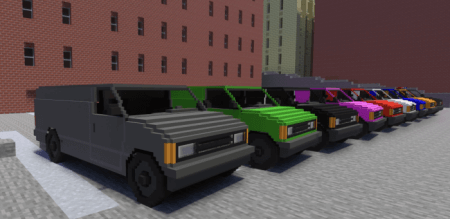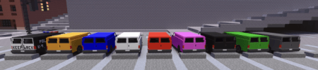 Аддон добавит в Майнкрафт 10 фургонов для езды и перевозок, которые могут одновременно перемещать до 6 игроков. В том числе и полийцейский фургон (до 4 игроков).