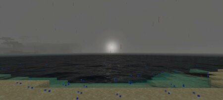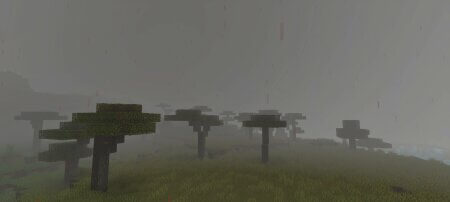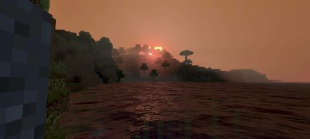 Это не обычный шейдер, он создаёт атмосферу серого неба, которая делает ваш вид расслабленным и сонным. Кровавый дождь вызывает ужас, а кровавая луна — с энтузиазмом для ночного исследования и охоты на монстров. Ваш мир будет ощущаться иначе, будто вы играете в другую игру — хоррор