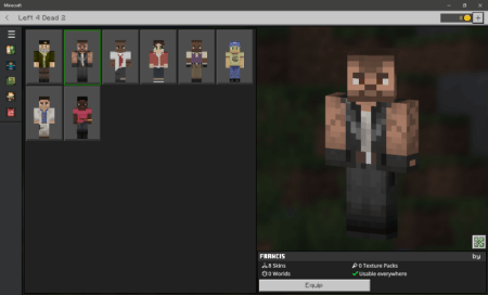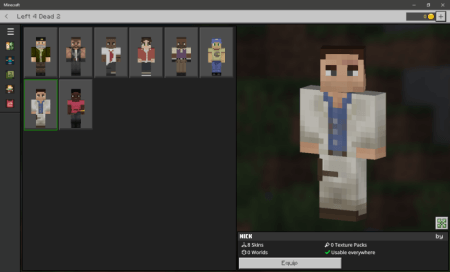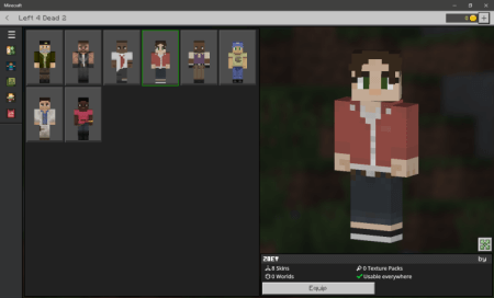 Мир выживания куда интереснее с любимыми персонажами. Например, с этим скинпаком можно побыть одним из главных героев шутера Left 4 Dead.